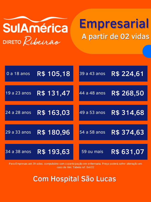 Tabela de preços SulAmérica empresarial Ribeirão ref: out/22